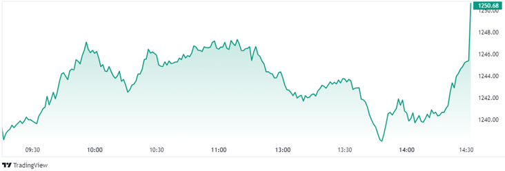Diễn biến chỉ số VN30-Index phiên 7/8. Nguồn: Tradingview
