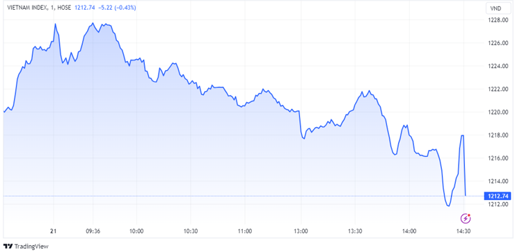 Kết phiên, VN-Index giảm 13,37 điểm (-1,09%), xuống 1.212,74 điểm; HNX-Index giảm 2,95 điểm (-1,16%), xuống 251,87 điểm; UpCoM-Index giảm 0,96 điểm (-1,02%), xuống 92,39 điểm.