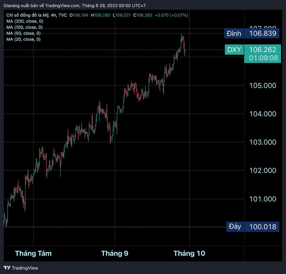 3. Tăng trưởng của đồng Đô la Mỹ: Đồng Đô la Mỹ đã đạt mức cao nhất trong 10 tháng, điều này khiến giá vàng trở nên kém hấp dẫn hơn đối với các nhà đầu tư đang tìm kiếm một khoản đầu tư an toàn trong bối cảnh lo ngại về suy thoái toàn cầu và nguy cơ chính phủ đóng cửa.