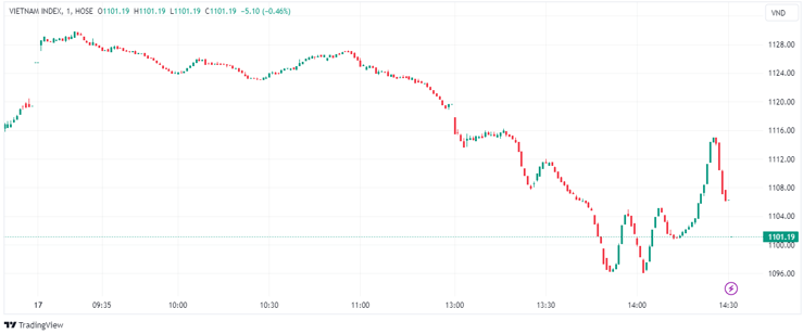 Kết phiên, VN-Index dừng chân ở mốc 1.101,19 điểm, mất 24,34 điểm, tương đương 2,16%; HNX-Index và UPCoM-Index lần lượt bốc hơi 1,32% và 1,27% còn 226,54 điểm và 86,02 điểm.