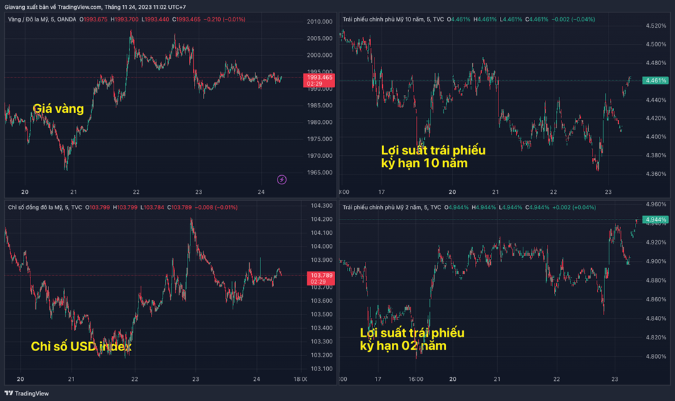 Trong phiên giao dịch châu Á ngày thứ Năm, giá vàng tăng vọt lên gần $2,000, nhờ vào sự suy yếu của Đô la Mỹ, nhưng sau đó đã xóa bỏ những lợi nhuận này và quay trở lại gần $1,990 trong giờ giao dịch Mỹ. Phiên này diễn ra khá yên lặng với thị trường Mỹ đóng cửa, và điều kiện giao dịch mỏng manh dự kiến sẽ tiếp tục hỗ trợ cho xu hướng ổn định. Thời điểm hiện tại, kim loại quý đang giao dịch khoảng $1,993.