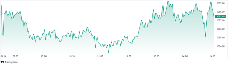 Nhà đầu tư xem xét chiến lược mua (long) ở nhịp rung lắc điều chỉnh trong phiên với điểm vào từ 1.095-1.096 điểm, dừng lỗ 1.094 điểm với mục tiêu 1.105 điểm. Vị thế bán (short) xem xét khi giá tăng lên vùng 1.106-1.111 điểm, dừng lỗ 1.113 điểm.