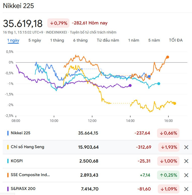 Các số liệu kinh tế được công bố trong phiên 16/1