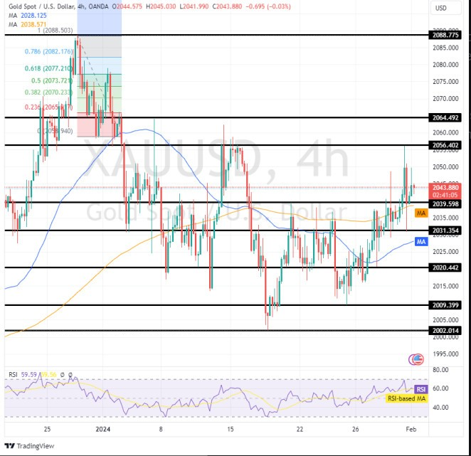 - Hỗ trợ: Vàng hiện giao dịch trên mức SMA 200 biểu đồ 4 giờ tại $2039. Hỗ trợ tiếp theo tại $2031 và $2020.