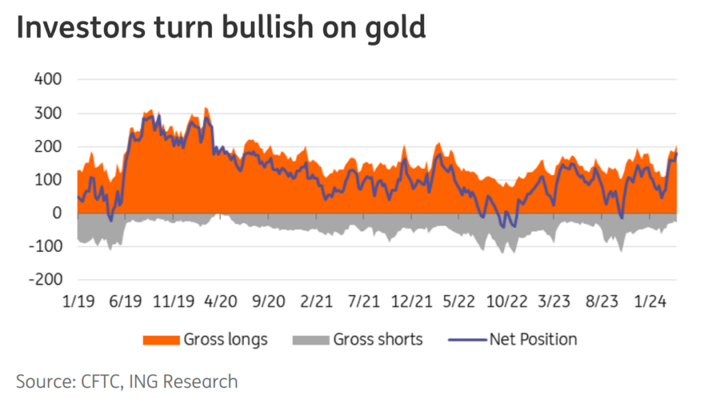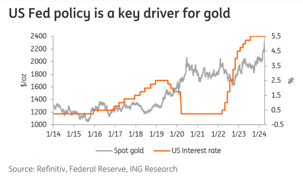 Manthey nói rằng ING vẫn dự đoán đợt phục hồi hiện tại của vàng sẽ tiếp tục đến hết năm 2024.