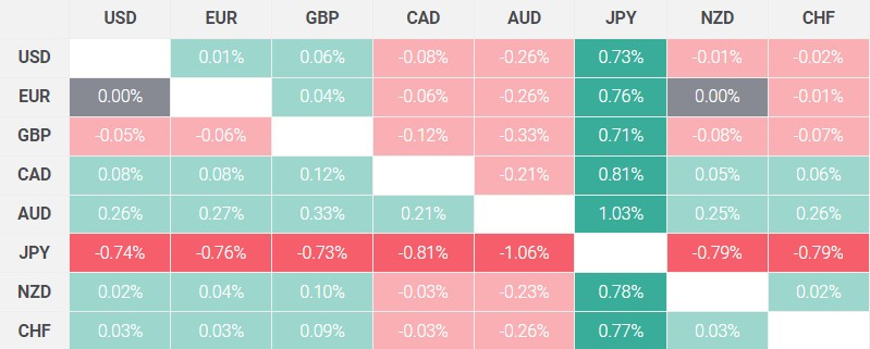 Bảng dưới đây cho thấy tỷ lệ phần trăm thay đổi của Yên Nhật (JPY) so với các loại tiền tệ chính được niêm yết hiện nay. Yên Nhật yếu nhất so với Đô la Úc.