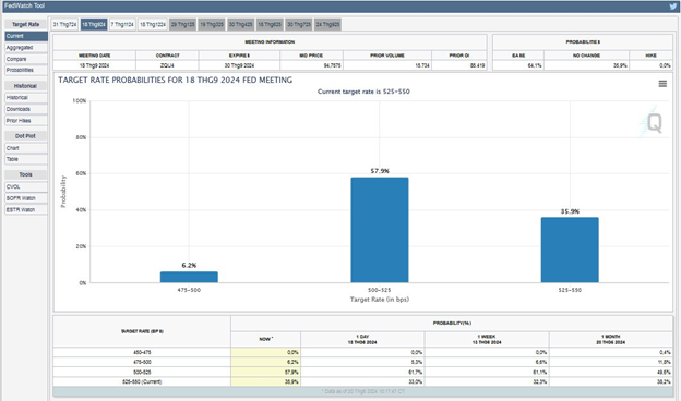 Thị trường đặt cược khoảng hơn 65% Fed hạ lãi suất trong tháng 9 sau khi Fed chỉ ngụ ý hạ lãi suất 1 lần trong năm 2024.