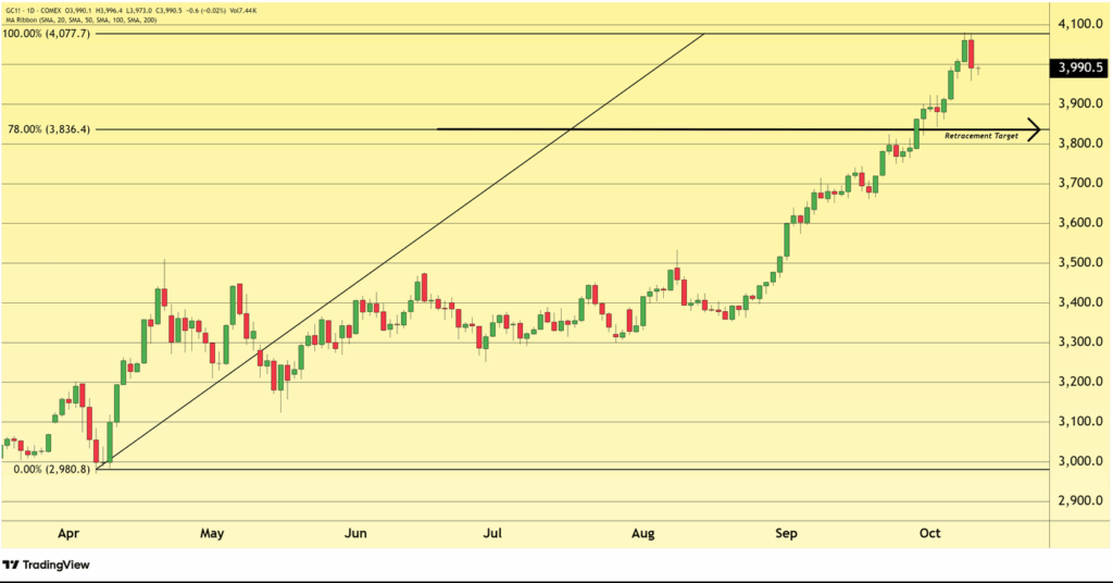 Theo giới phân tích, áp lực bán ra phần lớn đến từ động thái chốt lời của nhà đầu tư sau khi giá vàng vượt ngưỡng tâm lý 4.000 USD/ounce, cùng với việc đồng bạc xanh tăng 0,5%, đạt đỉnh hai tháng ở mức 99,39 điểm. Sự hồi phục của USD thường khiến vàng trở nên đắt đỏ hơn với nhà đầu tư nắm giữ các đồng tiền khác, qua đó làm giảm sức hấp dẫn của kim loại quý này.