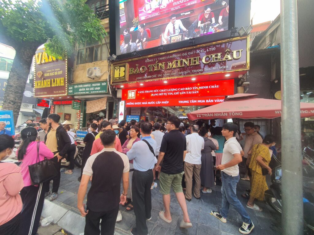 Tại thị trường trong nước, rất nhiều cửa hàng vàng đã không còn hàng để bán cho khách dù lượng người xếp hàng đông nườm nượp.