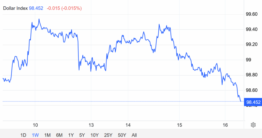 Chỉ số đô la Mỹ DXY duy trì dưới mức 99 vào ngày thứ Tư, khi các nhà đầu tư đánh giá những diễn biến mới trong thương mại và các phát biểu của Chủ tịch Cục Dự trữ Liên bang (Fed) Jerome Powell, củng cố kỳ vọng về việc tiếp tục cắt giảm lãi suất.