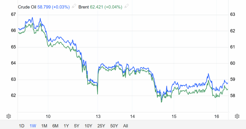 Hợp đồng dầu WTI mất 40 xu (tương đương 0,68%) còn 58,30 USD/thùng.