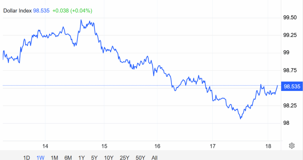 Bất chấp mức tăng nhẹ hôm thứ Sáu, đồng bạc xanh vẫn hướng đến mức giảm 0,5% trong tuần, chịu áp lực từ tình trạng chính phủ Mỹ đóng cửa kéo dài, lo ngại mới về các ngân hàng khu vực, và kỳ vọng ngày càng tăng về việc Cục Dự trữ Liên bang (Fed) sẽ cắt giảm lãi suất.