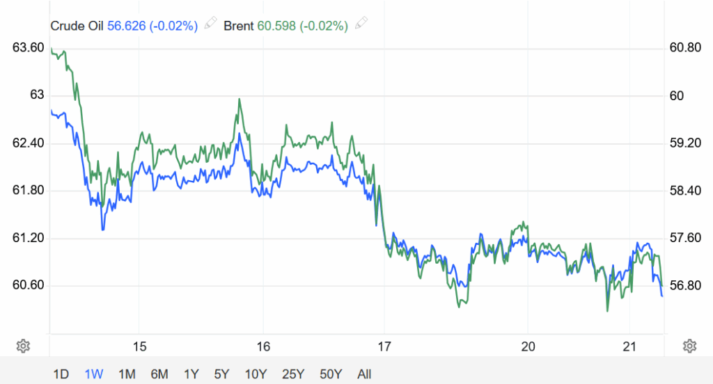 Cả 2 hợp đồng dầu đều giảm hơn 1 USD vào đầu phiên, và khép phiên tại mức thấp nhất kể từ đầu tháng 5/2025.