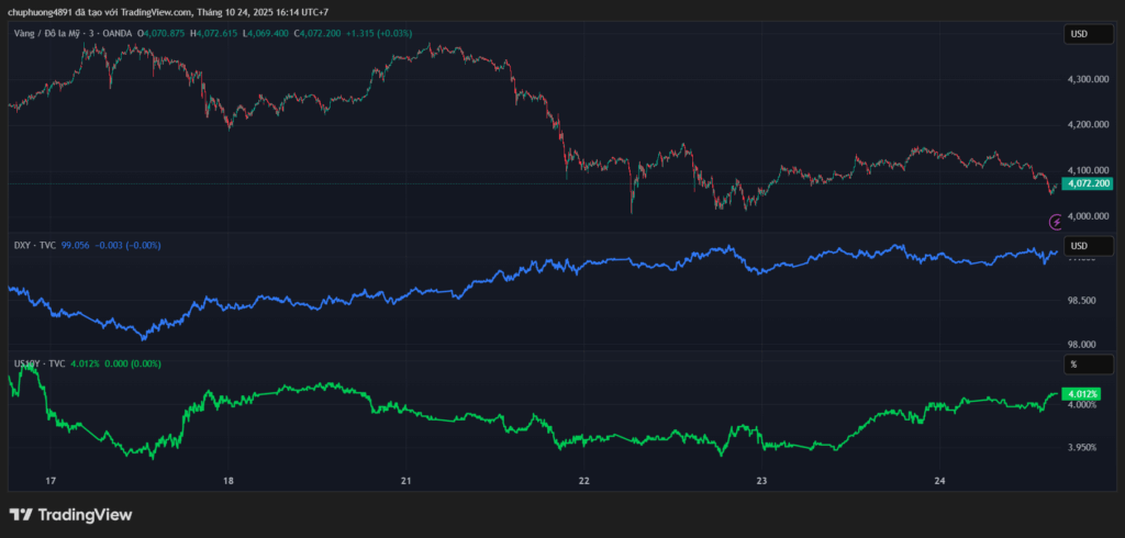 Giá vàng giảm về dưới $4100 – thiết lập tuần giảm đầu tiên sau mạch tăng 9 tuần liên tục.