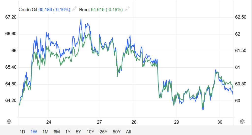 Hợp đồng dầu WTI cộng 40 xu (tương đương 0,7%) lên 60,55 USD/thùng.