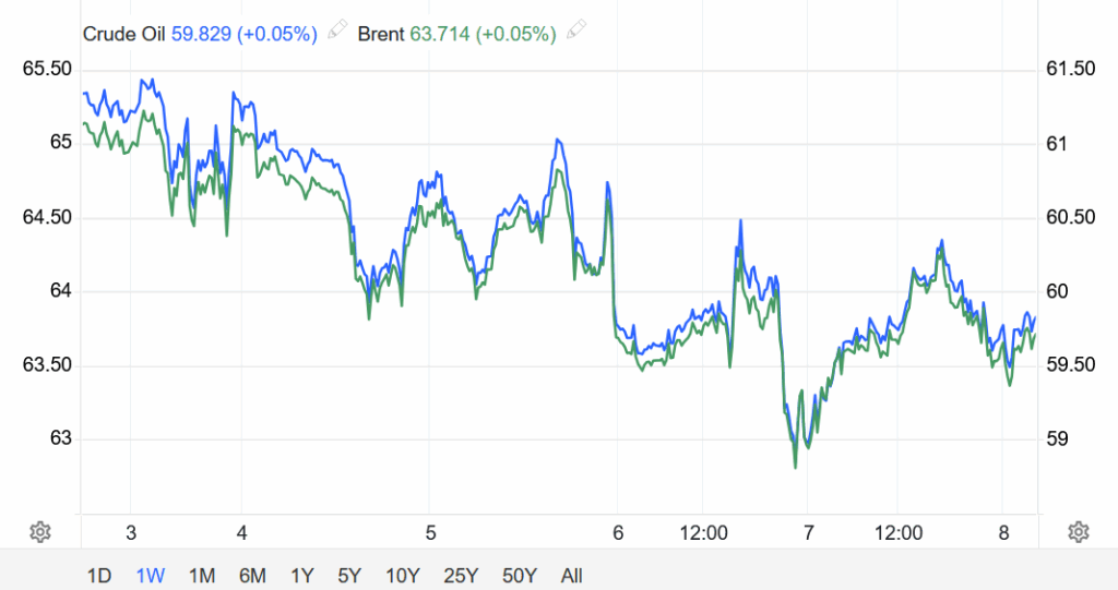 Hợp đồng dầu WTI cộng 32 xu (tương đương 0,54%) lên 59,75 USD/thùng.