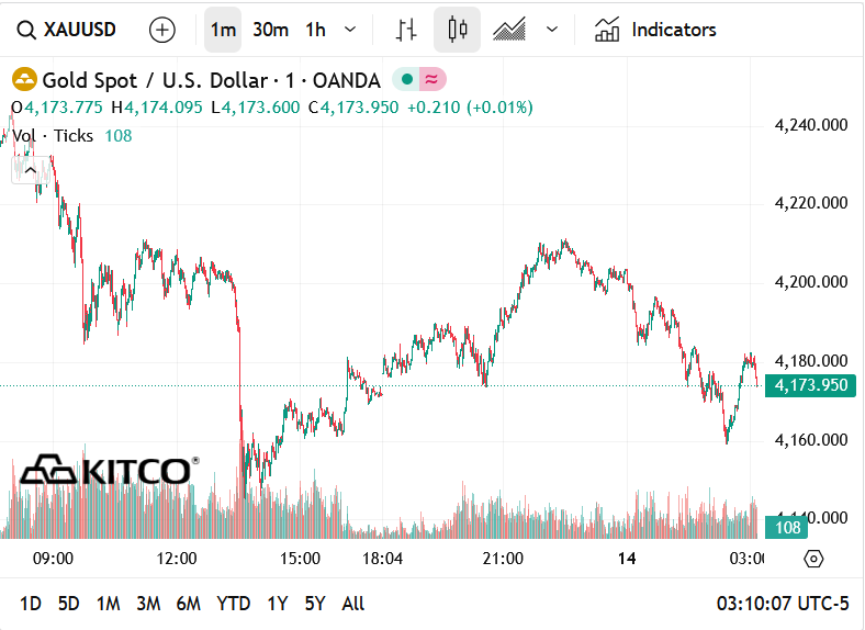 Trong phiên giao dịch sáng thứ Sáu (GMT), vàng giao ngay giảm về $4173/oz.