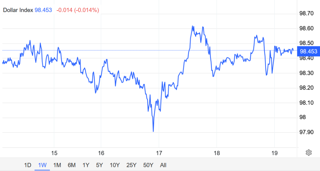 Chỉ số DXY giảm nhẹ xuống 98,3 sau khi dữ liệu lạm phát của Mỹ cho thấy áp lực giá cả đã hạ nhiệt trong tháng 11. CPI lõi tăng 2,6% so với cùng kỳ năm trước, mức tăng chậm nhất kể từ đầu năm 2021 và giảm so với mức 3% của hai tháng trước đó, trong khi CPI toàn phần tăng 2,7%.