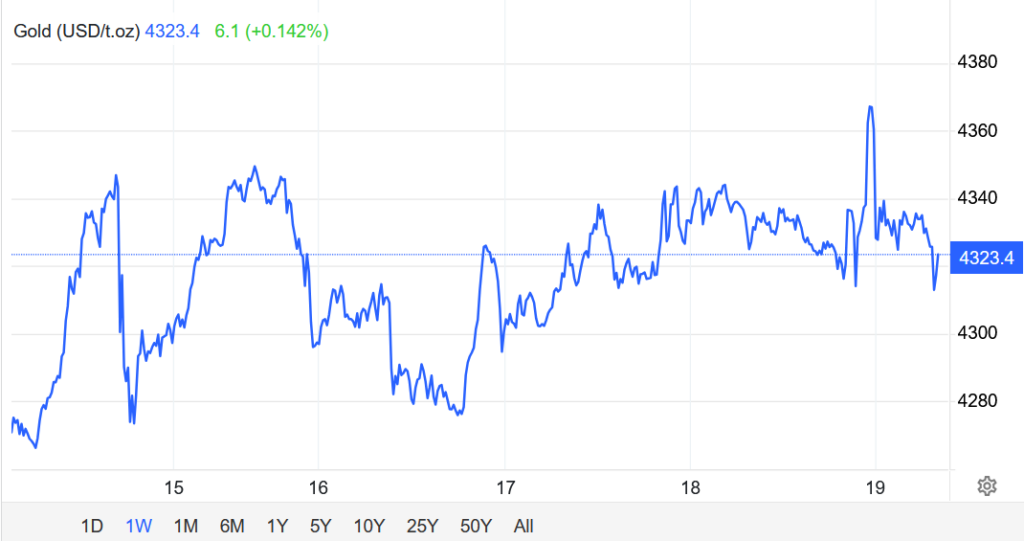 Chốt phiên thứ Năm, giá vàng giao ngay giảm 0,2%, giao dịch quanh mức $4330,39/oz.