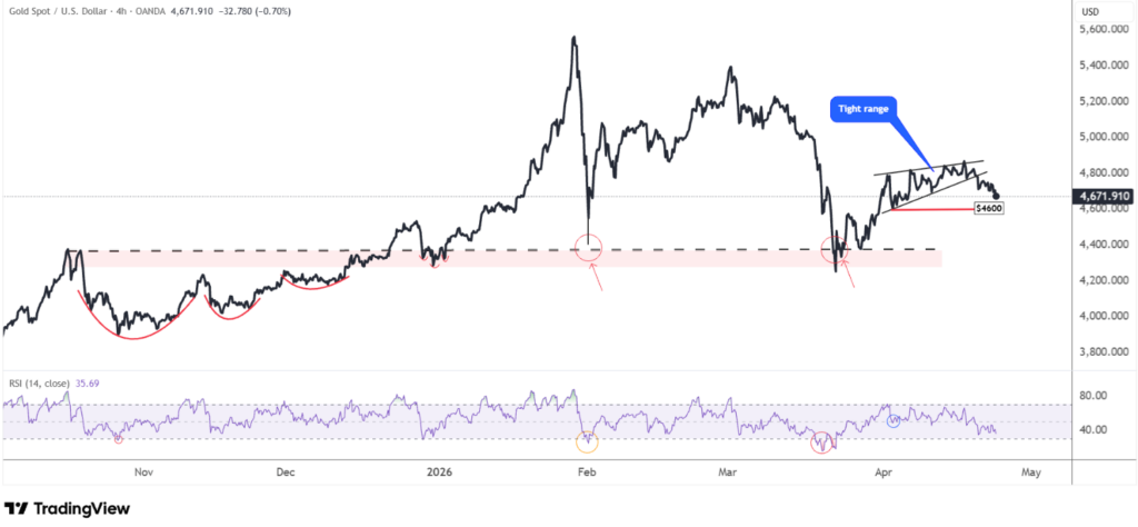 - Giá đang hướng về 4.600 USD sau khi phá vỡ mô hình tích lũy