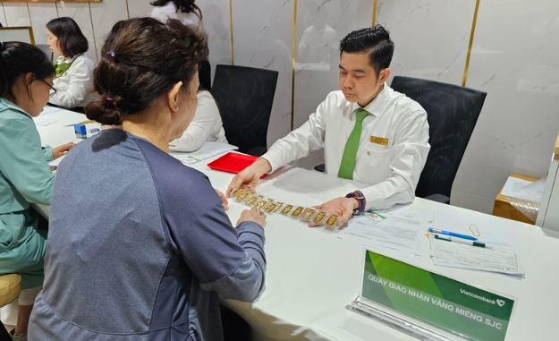 Vietcombank là ngân hàng đầu tiên triển khai bán vàng miếng SJC qua ứng dụng di động. Ba ngân hàng thương mại nhà nước khác là BIDV, VietinBank và Agribank vẫn tiếp tục triển khai đăng ký mua vàng miếng SJC online qua website ngân hàng, giao dịch và nhận vàng tại quầy.