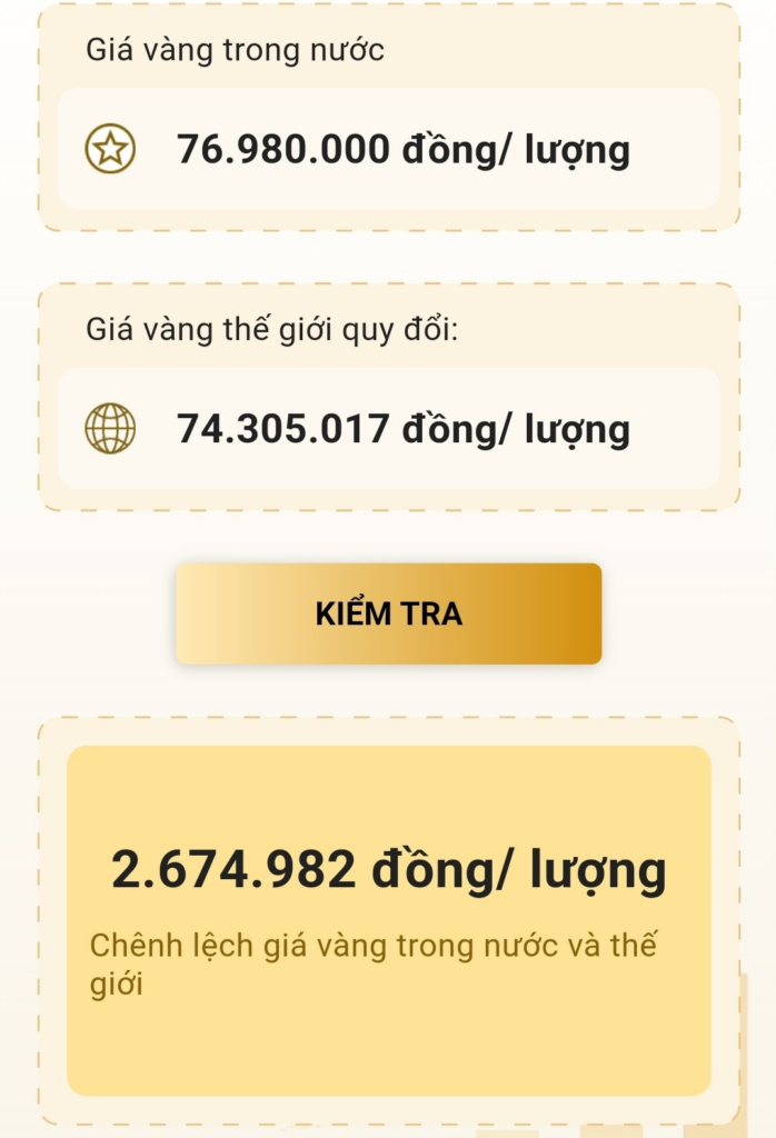 Với mức giá 2360 USD, vàng thế giới sau quy đổi đạt 74,3 triệu đồng/lượng, thấp hơn vàng miếng SJC 2,7 triệu đồng. Mức chênh lệch tại giảm mạnh 700.000 đồng so với 3,4 triệu đồng trong phiên sáng qua.