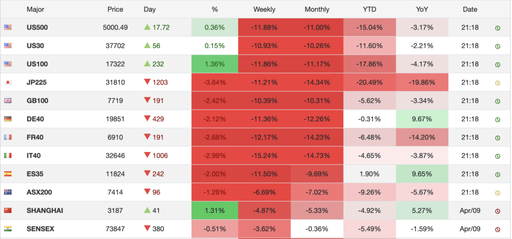 Thị trường tài chính toàn cầu đang trải qua giai đoạn biến động mạnh do ảnh hưởng từ chính sách thuế quan của Mỹ, đặc biệt là căng thẳng thương mại leo thang với Trung Quốc.