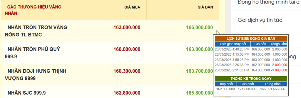 Cập nhật Giá Vàng chiều 23/3: Bật lên từ SMA 200 ngày – Vàng trong nước hồi nhanh lên 166 triệu