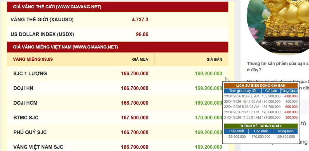 Trong phiên giao dịch sáng nay ngày 23/04/2026, giá vàng (XAU/USD) đang dao động quanh ngưỡng 4.710 USD/ounce, ghi nhận mức giảm nhẹ so với phiên trước đó. Kim loại quý này chịu áp lực bán khi tâm lý thận trọng bao trùm thị trường sau những thông báo mới nhất từ Nhà Trắng liên quan đến xung đột tại Trung Đông.