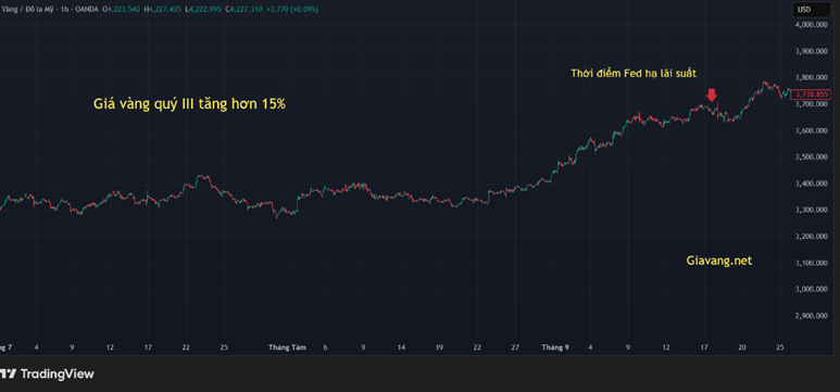 Biểu đồ 4: Diễn biến giá vàng quý III năm 2025
