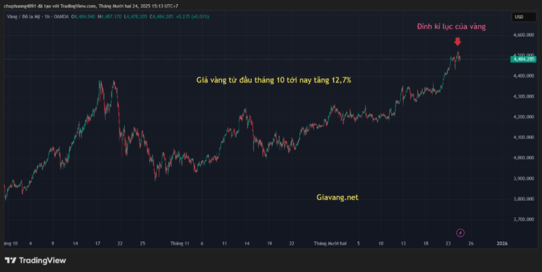 Những ngày cuối năm ghi nhận đà tăng khủng khiếp của vàng, với giá vượt $4500 trong phiên giao dịch trước thềm Giáng sinh. Nhà đầu tư đổ xô mua vàng khi mà các quỹ lớn gom mua và bất ổn Mỹ – Venezuela.