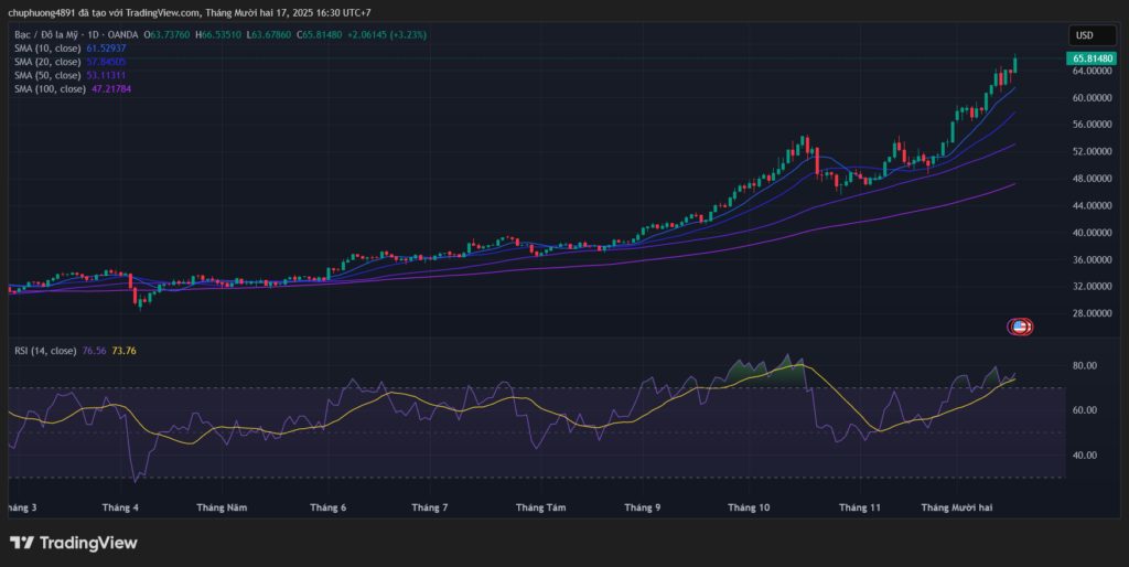 Trên thị trường kim loại quý, giá bạc tiếp tục tăng mạnh và thiết lập mức cao mới. Đà tăng được thúc đẩy bởi căng thẳng địa chính trị cùng với nhu cầu sử dụng bạc trong công nghiệp ngày càng gia tăng, củng cố triển vọng tích cực cho kim loại này trong trung hạn.