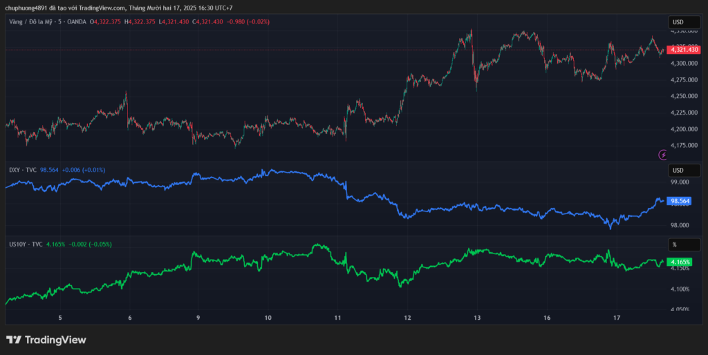 Giá vàng tiếp tục giằng co, neo trên vùng $4300.