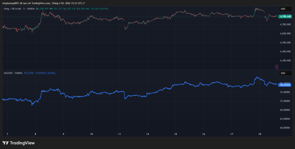 Giá vàng và bạc giảm vào đầu phiên Á và sau đó diễn biến đi ngang.