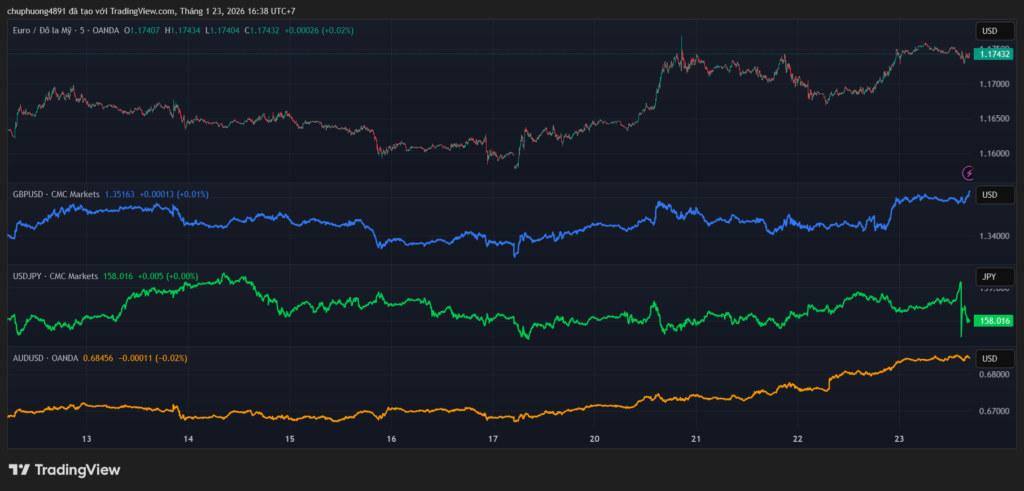 Chỉ số USD Index giữ quanh mức 98,3 vào ngày thứ Sáu và được dự báo sẽ giảm khoảng 1% trong cả tuần, khép lại một tuần biến động mạnh trong bối cảnh bất ổn khi những thay đổi về cục diện địa chính trị khiến giới đầu tư lo lắng. Tổng thống Donald Trump ban đầu đã đe dọa áp thuế mới đối với một số quốc gia châu Âu phản đối kế hoạch tiếp quản Greenland của ông, trước khi đảo ngược lập trường sau khi đạt được một thỏa thuận khung với NATO cho một thỏa thuận tiềm năng trong tương lai.
