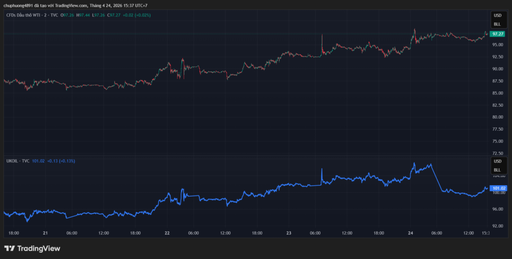 Thị trường năng lượng diễn biến trái chiều. Hiện tại, giá dầu Brent giảm về quanh 101 USD/thùng, dầu WTI tiến lên mốc 97 USD/thùng.
