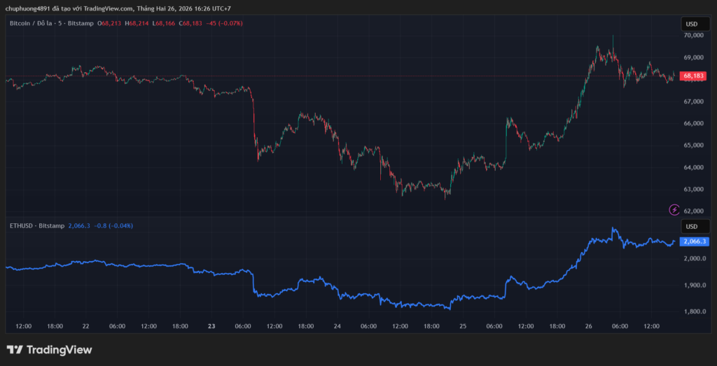 Thị trường tiền kĩ thuật số tăng khá tố. BTC/USD leo lên vùng 68.000. ETH/USD vượt mốc 2050.