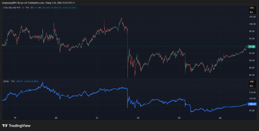 Thị trường năng lượng tăng trở lại sau đà giảm.Hiện tại, giá dầu Brent lấy lại mốc 100USD/thùng, dầu WTI tăng lên 94USD/thùng.