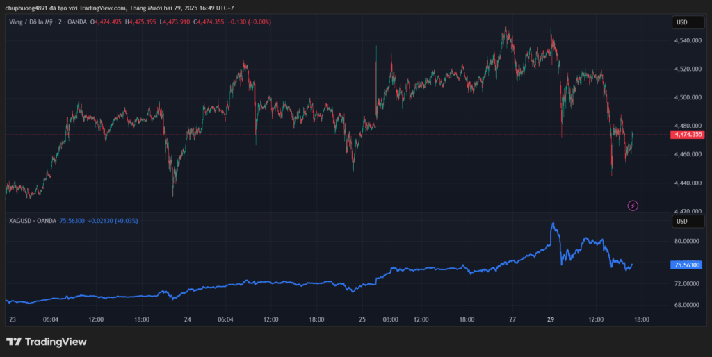 Giá vàng – bạc giảm rất mạnh và rung lắc dữ dội trong ngày đầu tuần.