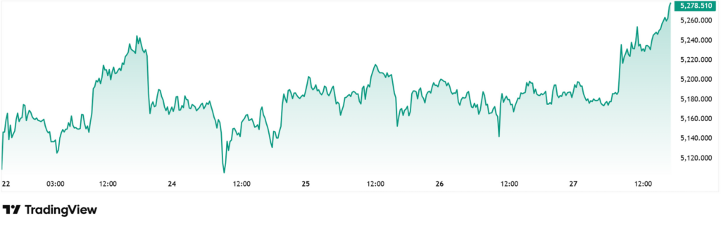 - Kháng cự gần: 5.269 – 5.300 USD