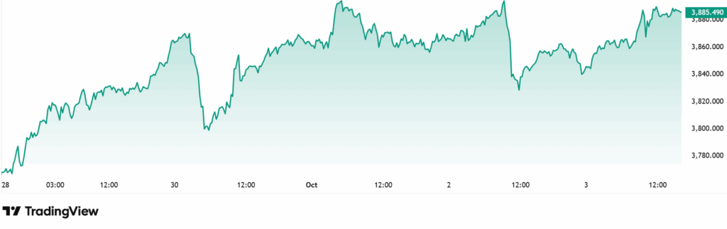 Ngưỡng hỗ trợ quanh 3.800 USD đã được củng cố, và mốc 4.000 USD không còn xa.