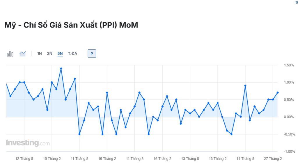 (GVNET) Thị trường tài chính đang nín thở chờ đợi báo cáo Chỉ số Giá Sản xuất (PPI) tháng 3 của Mỹ, dự kiến công bố vào ngày 14/04. Các chuyên gia dự báo một mức tăng trưởng kỷ lục, đánh dấu tốc độ mạnh nhất trong vòng 2 năm qua.
