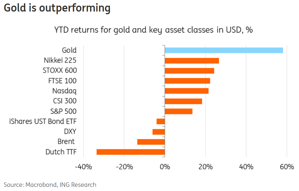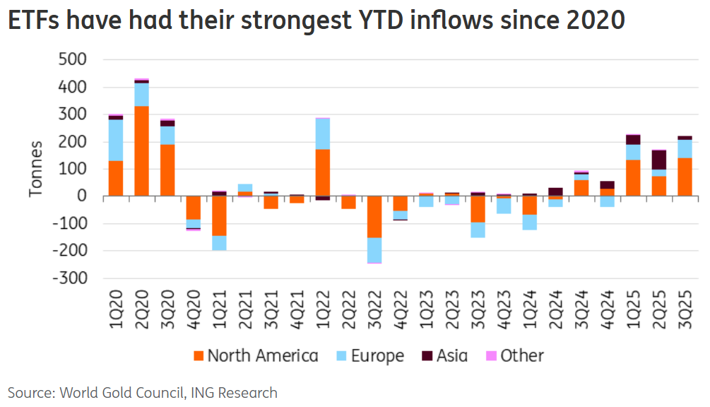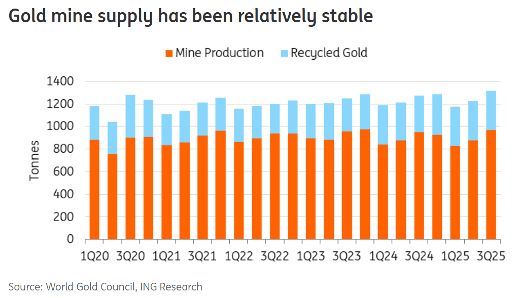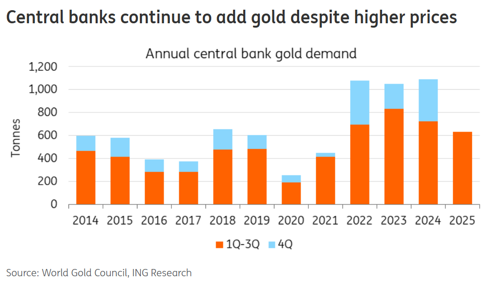 Dự báo từ ING: Đà tăng của vàng sẽ tiếp tục trong năm 2026, giá trung bình đạt $4325/oz