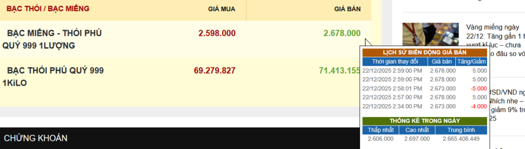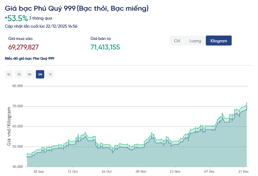 Giá Bạc hôm nay 22/12: Thế giới suýt mốc 70USD – Bạc Phú Quý phá kỉ lục liên tục, tăng 50% chỉ trong 3 tháng