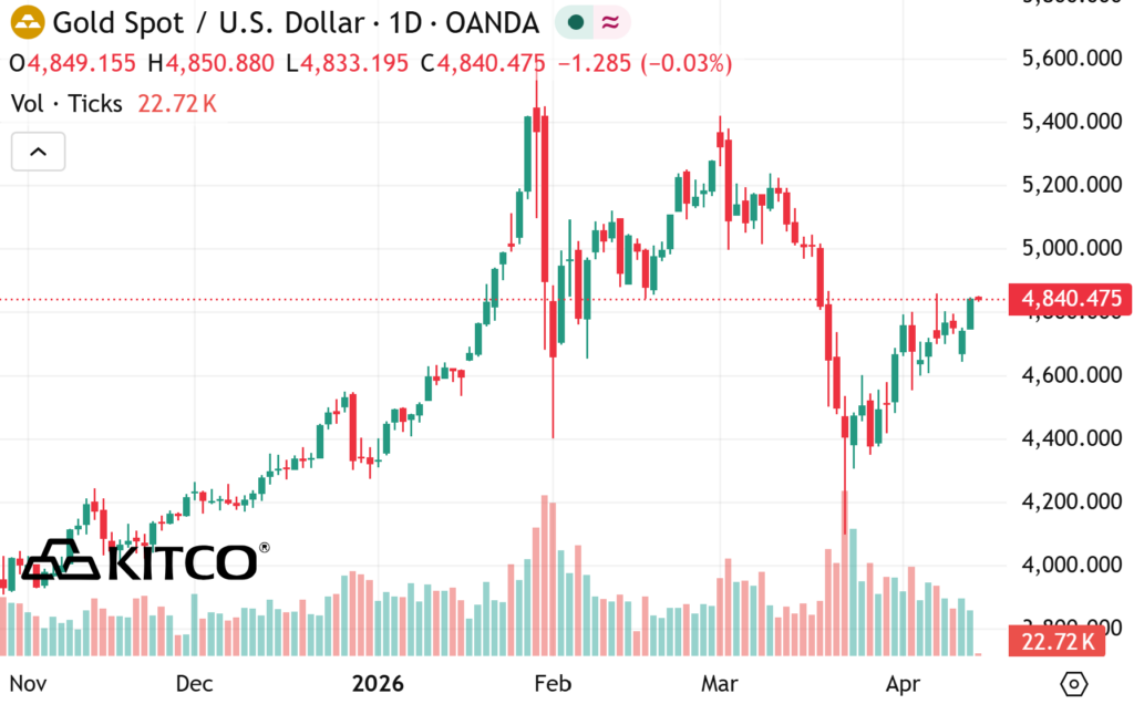 Hợp đồng vàng tương lai mở cửa ở mức 4.769 USD/ounce và tăng liên tục trong suốt phiên, gần như không có nhịp điều chỉnh đáng kể, trước khi đóng cửa quanh 4.870 USD/ounce – mức cao nhất trong gần 30 ngày.