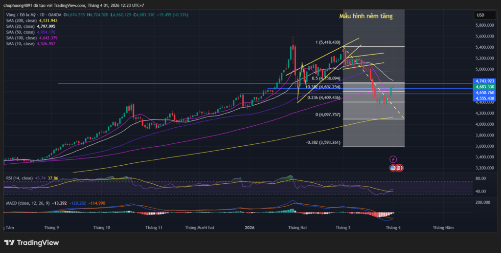 Nếu vượt 4.750 USD, giá vàng có thể mở rộng đà tăng. Ngược lại, các vùng hỗ trợ quan trọng gồm 4.590 USD, 4.500 USD và 4.400 USD. Việc phá vỡ các mốc này có thể kéo giá quay về vùng 4.136 USD (SMA 200).