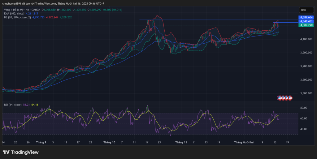 - Kháng cự gần nhất: 4.350 USD (đỉnh ngày 15/12)