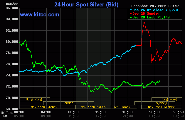 Ngay sau thông tin siết ký quỹ, giá bạc giao ngay lao dốc 8,5%, xuống còn 72,58 USD/ounce, dù trước đó trong phiên đã lập đỉnh lịch sử mới tại 84,01 USD/ounce. Trong ngày 29/12, bạc có thời điểm giảm tới 11%, ghi nhận mức giảm trong ngày sâu nhất kể từ tháng 9/2020.