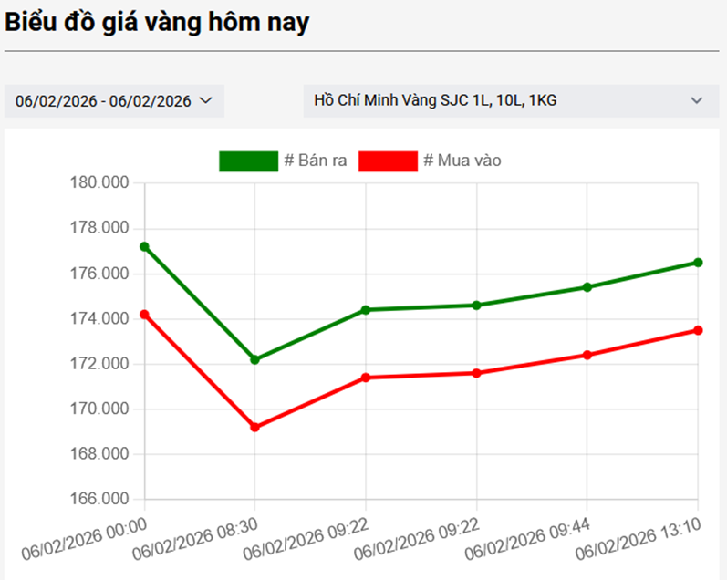 Cập nhật thời điểm 14h10 ngày 6/2, vàng miếng SJC Hồ Chí Minh niêm yết giao dịch mua – bán ở mức 173,5 – 176,5 triệu đồng/lượng, giá mua giảm 700 nghìn và giá bán hạ 700 nghìn so với cuối ngày hôm qua. Đầu giờ sáng giá giảm 5 triệu sau đó là các nhịp hồi phục.