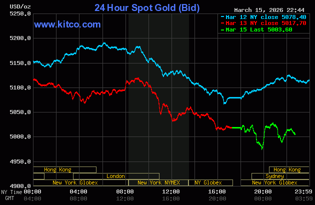 Trong phiên giao dịch châu Á, giá vàng giao ngay giảm hơn 1%, rơi xuống dưới ngưỡng tâm lý 5.000 USD/ounce. Kim loại quý này có thời điểm chạm đáy trong ngày tại 4.971,30 USD/ounce.